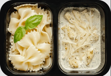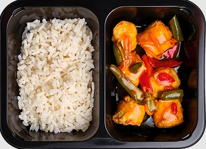 Правильное питание обычно доставляется в контейнерах, порционно разделенное на приемы пищи. Это позволяет удобно хранить и разогревать еду, а также контролировать количество потребляемых калорий.